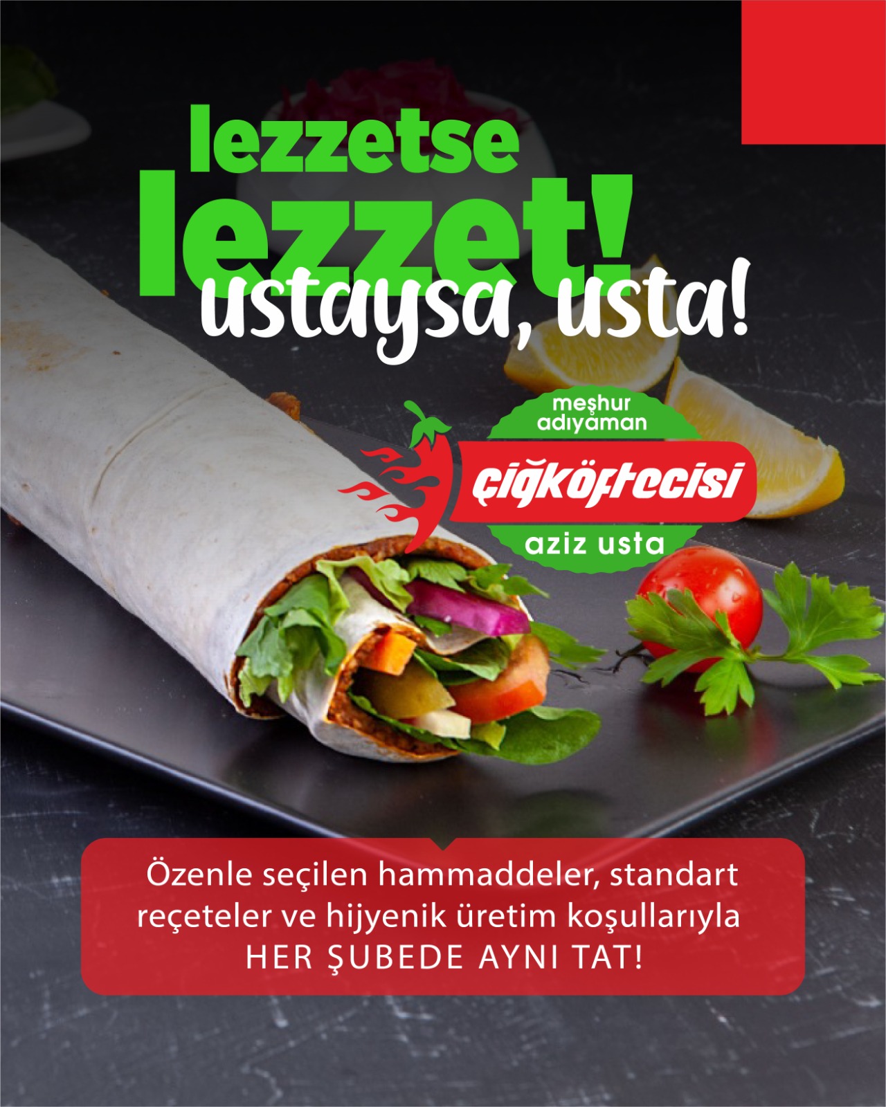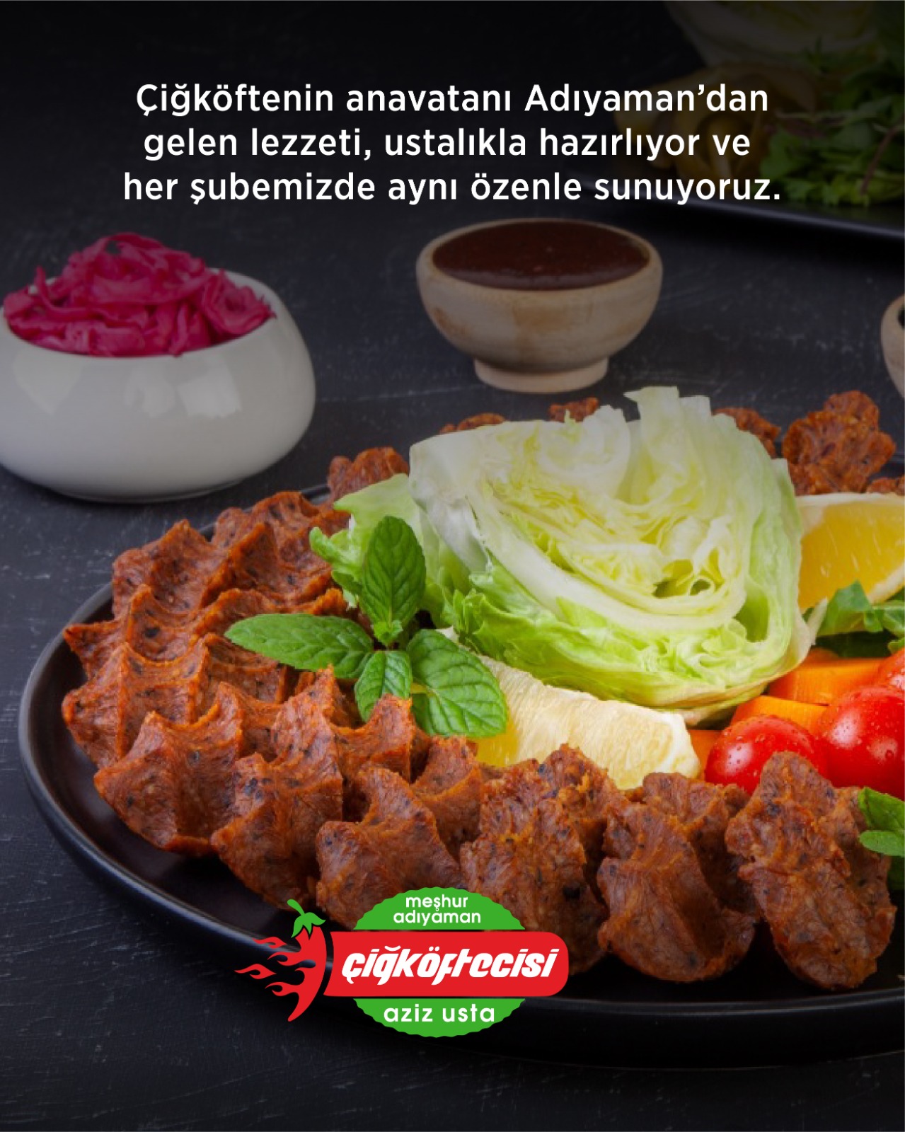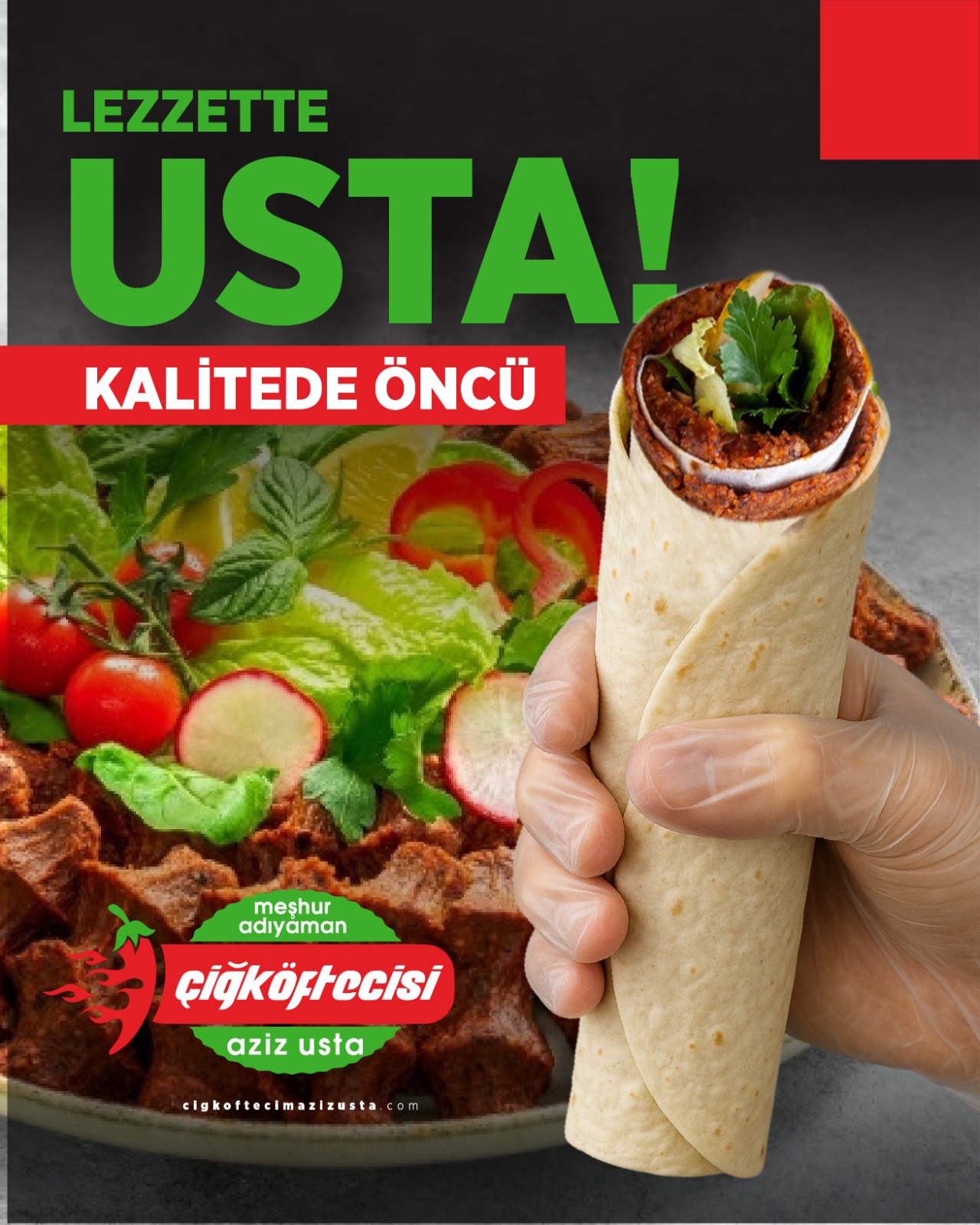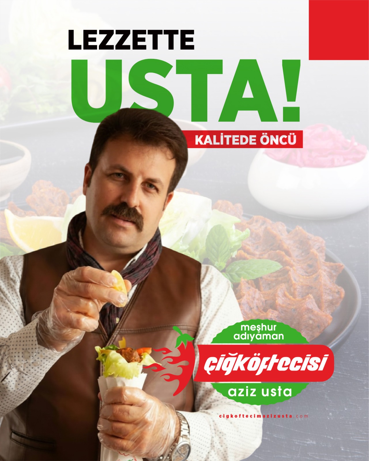 Gerçek lezzet, MEŞHUR ADIYAMAN ÇİĞKÖFTECİSİ AZİZ USTA markasıyla Türkiye’nin dört bir yanına ulaşıyor.